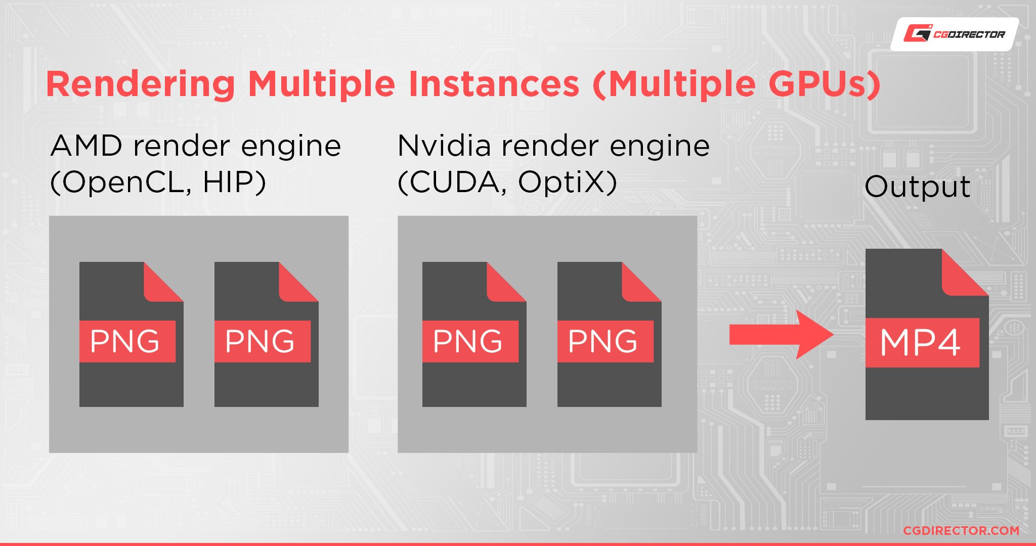 For example, running multiple instances of a render engine, one set to CUDA/OptiX and the other set to OpenCL or HIP will allow you to utilize both GPUs (e.g. in Render Engines like Blender’s Cycles). I’ve tried this before and while it works more often than not, driver issues do tend to arise at times, as the operating system is running two GPU drivers from different brands, one of them having a monitor attached to it and rendering, the other just rendering.