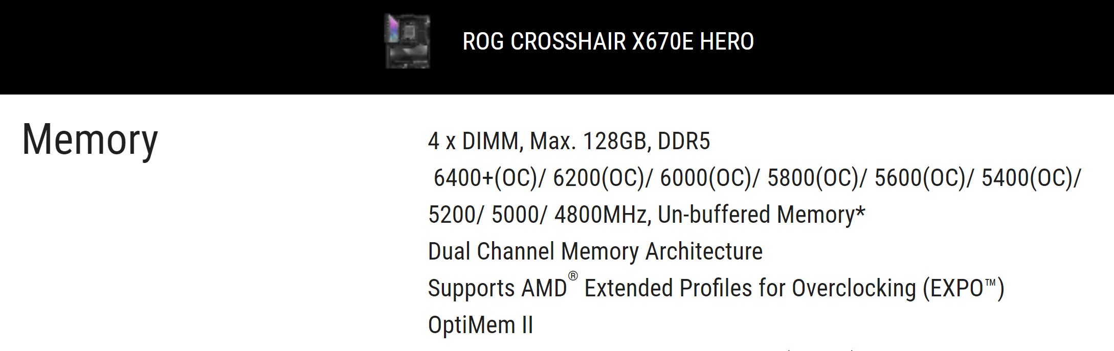 For RAM overclocking concerns, you’ll need to consult the specs of your motherboard before buying it. Your motherboard manufacturer will list all RAM speeds tested for your board on their QVL (usually on the support page of that motherboard). Make sure that this includes the advertised speed of your RAM kit of choice. Although manufacturers do list memory speeds on the technical specs page (shown below), the top values are generally optimistic at best and unrealistic at worst since they might be speeds achieved in ideal conditions with very low-density memory, etc.