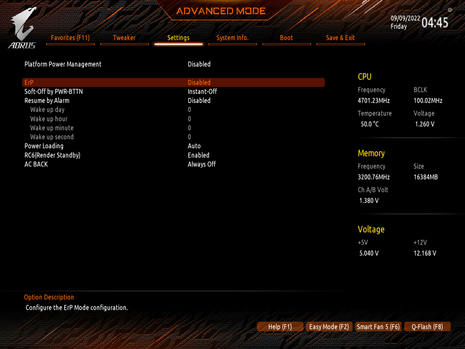 Once inside your BIOS, you’ll look for an option labeled ErP Support/ErP Mode or something similar. You can enable or disable it from there.